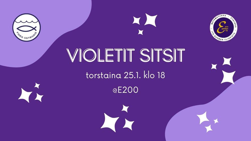 Violetit sitsit järjestetään torstaina 25.1. klo 18 Educalla E200. Sitsit maksavat 12€, ja sisältävät 2 mietoa, 3 shottia, ruokaa, haalarimerkin sekä katamme lipputuloilla myös muita tapahtuman kuluja.