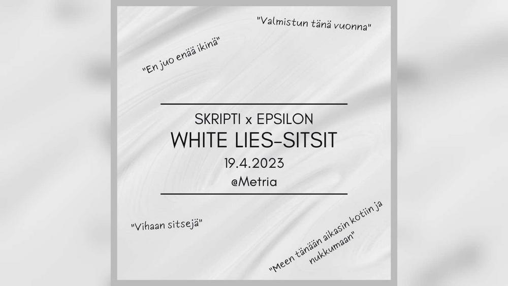 Skripti ja Epsilon yhdistävät voimansa vapun kunniaksi White lies -sitsien merkeissä. On siis aika puhdistaa omatuntosi ja paljastaa muulle sitsikansalle pahin valkoinen valheesi. Valheen voit kirjoittaa esimerkiksi tussilla valkoiseen paitaan.